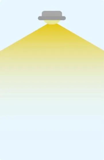 Un ampio angolo del fascio di luce è consigliato come illuminazione generale per spazi come corridoi o altre aree di passaggio. Consigliamo di fare attenzione che il cono di luce prodotto dalla lampadina sia sufficiente per illuminare interamente l'area desiderata in tutti i suoi angoli.