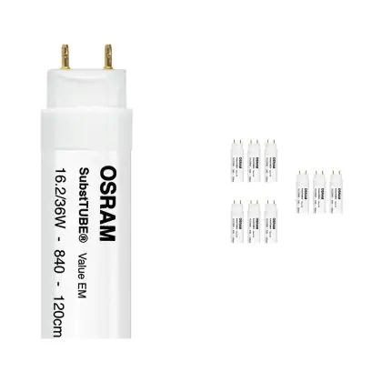 Confezione Multipack 10x Osram SubstiTUBE LED T8 Value (EM Mains) Standard Output 16.2W 1700lm - 840 Bianco Freddo | 120cm - Sostitutiva 36W