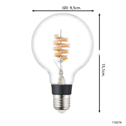La Eglo Connect.Z Smart LED Globe E27 Filamento Chiara 4.9W 400lm - 830 Luce Calda - + RGB | Dimmerabile - Sostitutiva 40W è la perfetta sostituzione per la tua lampada convenzionale 40W con attacco E27 grazie alla sua tecnologia LED. Passare a LED ti offrirà tanti vantaggi!