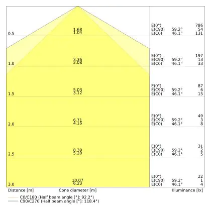 Il codice colore è una combinazione di resa cromatica (CRI) e colore della luce (Kelvin). La prima cifra indica la resa cromatica (1 = resa del colore molto bassa, 9 = massima resa del colore), mentre la seconda e la terza si riferiscono al colore della luce. Esempio: il codice colore 830 indica una buona resa cromatica (8) e luce bianca calda (3000K). |