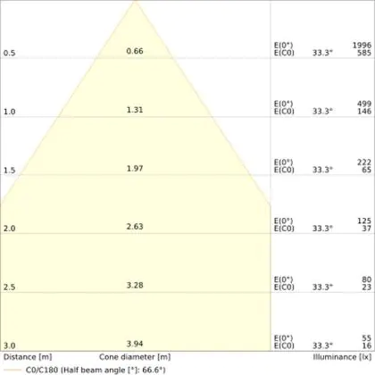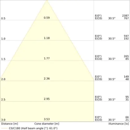 L'apertura del fascio luminoso indica l'angolo del fascio di luce proveniente da una lampada o lampadina. Si misura in gradi (D) e più piccolo è l'angolo, più piccola è l'apertura del fascio di luce.