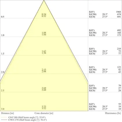 L'apertura del fascio luminoso indica l'angolo del fascio di luce proveniente da una lampada o lampadina. Si misura in gradi (D) e più piccolo è l'angolo, più piccola è l'apertura del fascio di luce.