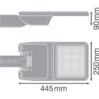 Descrizione Ledvance Illuminazione stradale LED Flex Grande RV25ST Grigio 25W 3270lm 25x145D - 727 Bianco Molto Caldo | IP66 – Asimmetrico