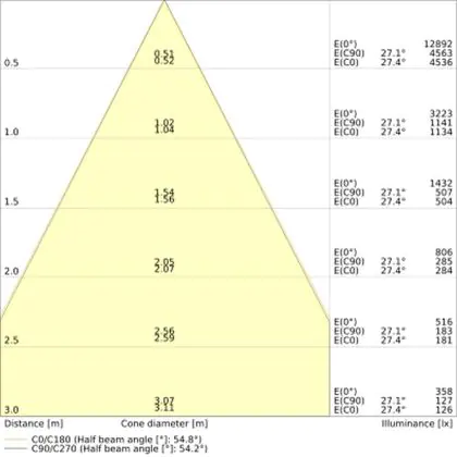 L'apertura del fascio luminoso indica l'angolo del fascio di luce proveniente da una lampada o lampadina. Si misura in gradi (D) e più piccolo è l'angolo, più piccola è l'apertura del fascio di luce.