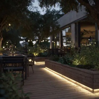 Questa fonte di luce può sempre essere utilizzata per l'illuminazione d'accento. Per usarla invece come illuminazione generale bisogna considerare l’emissione luminosa e l’apertura del fascio di luce. Questa striscia LED è lunga 5000 mm e ha una potenza luminosa di 380 Lumen. Dividendo il numero di Lumen per la lunghezza della striscia LED troverai la potenza luminosa per metro. Le strisce LED hanno generalmente un fascio di luce ad ampio angolo, che non fa eccezione per questo articolo: °. Clicca qui per scoprire quanti lumen servono in ogni stanza.