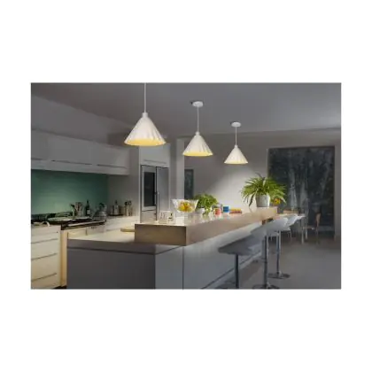 Con gli apparecchi dimmerabili si può rregolare l'intensità luminosa. Quando si abbassa la potenza della luce si consuma meno energia elettrica e si risparmia quindi sui costi energetici. Le lampade dimmerabili possono anche essere usate per creare un'atmosfera molto accogliente. Tieni presente che hai bisogno di un dimmer LED per regolare apparecchi LED.