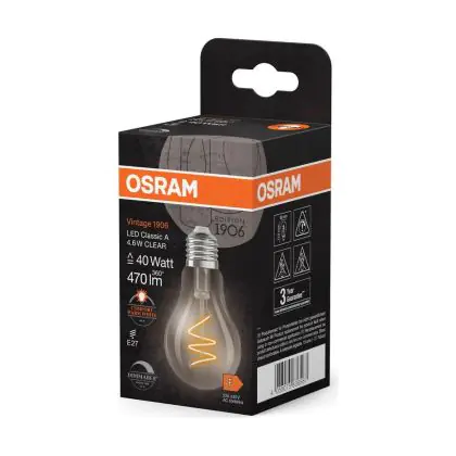 La Osram Vintage 1906 LED Classic Slim E27 Pera Filamento Chiara 4.6W 470lm - 922 Bianco Molto Caldo | Miglior Resa Cromatica - Dimmerabile - Sostitutiva 40W è la perfetta sostituzione per la tua lampada convenzionale 40W con attacco E27 grazie alla sua tecnologia LED. Passare a LED ti offrirà tanti vantaggi!