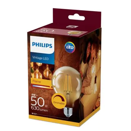 Questa lampadina a filamento LED E27 sostituisce le lampade ad incandescenza da 50W con un consumo di soli 8W a parità di resa luminosa.