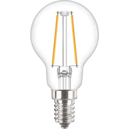 La lampada Philips Corepro LED Lustre E14 Sferica Filamento Chiara 2W 250lm - 827 Bianco Molto Caldo | Sostitutiva 25W è il sostituto perfetto per le tue vecchie lampade 25W con attacco a vite piccolo E14 grazie alla sua tecnologia LED. Passare a LED ti offrirà molti vantaggi!