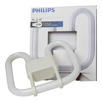 Le Philips PL-Q 4P sono lampade fluorescenti di forma quadrata, a doppia D. Questa serie é compatibile con trasformatori elettronici. Philips PL-Q 16W 830 4P hanno una base di tipo GR10q, a 4 pin e presentano una potenza di 16W.