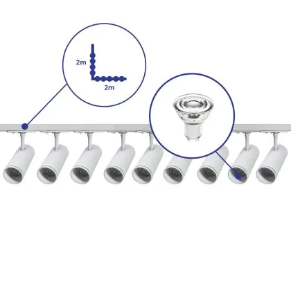 | Nome del fabbricante | Complete L shaped 1-Phase Track Set White incl. 9x Spot fixture + GU10 2700K 3W Dim – 2 x 2 meters i | |